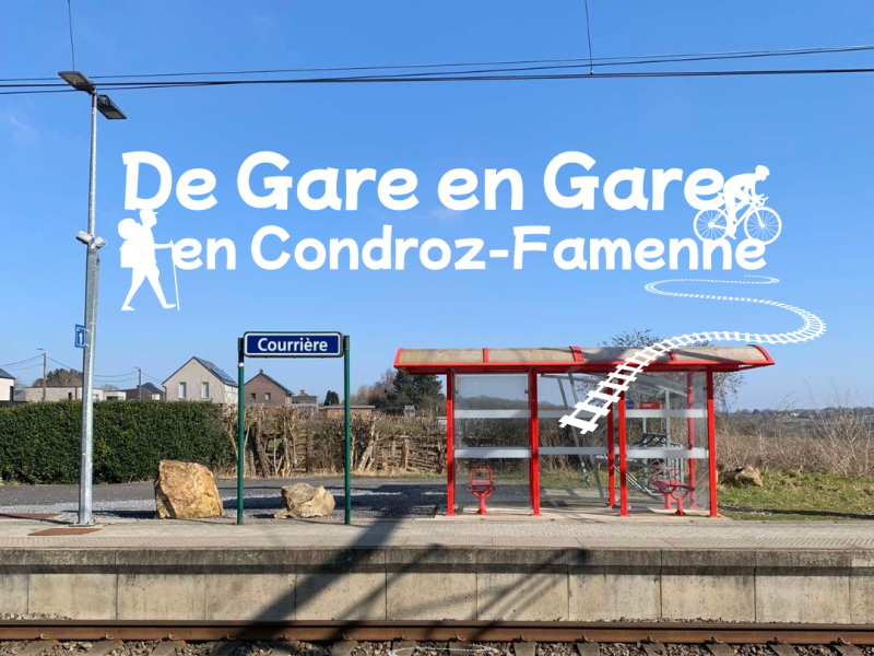 "De Gare en gare en Condroz-Famenne - De Assesse à Natoye" fait partie d'un ensemble de balades vous permettant de traverser la région en mobilité douce. Venez en train, baladez-vous à pied ou à vélo, d'une gare à la suivante, et profitez de nos magnifiques paysages.
